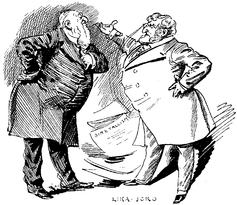 There we were indeed. Opposition didn't show up with the enthusiasm that might have been expected in such a cause. Question was indeed raised whether the necessary forty Members had risen to support application for leave. Speaker said it was all right, so Squire of Blankney brought out his treasured manuscript and reeled off his speech. Squire of Malwood exceedingly angry that he should have occupied nearly an hour for the purpose. So angry that he took almost precisely same time in replying. Drew a lurid picture of the other Squire going about "endeavouring to make mischief in Hindustan." The poor Squire of Blankney! No such fell design had filled his manly breast. He was guilty of no more direful purpose than that of availing himself of forms of the House to read a paper on Bimetallism prepared for a lapsed occasion, which might have been out of date had he kept it in his drawer till he came back from his holiday. It led to appropriation of four hours of the sitting; but if they had not been wasted in this way, they would have been squandered in some other, and House would have lost spectacle of this set-to between the Malwood Mauler and the Blankney Pet.