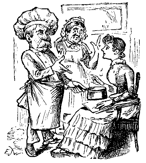 Next Day.—Have got leave of absence (without mentioning reason). I believe I pleaded the Drama, as usual, and I have jotted down a line or two. Am dressing for luncheon—somehow I take longer than usual. Ready at last; the coast is clear, I am a trifle early, but I can stroll gently down to the quay.... Turn a corner, and come upon Ponking, with Louise. Fancy both look rather confused, but they are delighted to see me. "Was I going any where in particular?" "No—nowhere in particular." "Then I'd better come along with them—they have dined early, and are doing the lions." Louise makes such a point of it that I can't refuse—must watch my chance, and slip off when I can.