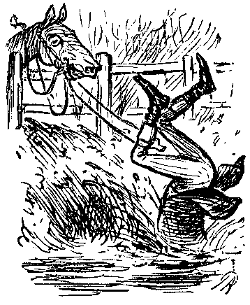 He explains, sulkily; he meant no harm; never thought anyone would be offended by being spoken to civil; he never met girls like that before (which is likely enough); and to think I should have treated him that savage and brutal—it was that upset him. Tell him I am sorry, but I can't help it now. "Yes you can," he says, hoarsely. "You know this girl—this Miss Derin'," (he has followed us, it appears, and caught her name)—"you don't ought to play dog in the manger now—I want you to introduce me in a reg'lar way. I tell yer I'm down-right smitten." Introduce him—to Ethel! Never, not if I won the V.C. for it! "Then you look out!"