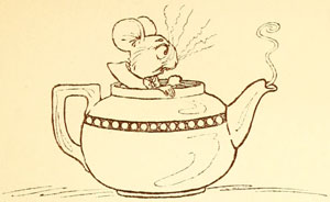 He said, "I hunt for haddocks' eyes Among the heather bright, And work them into waistcoat-buttons In the silent night. And these I do not sell for gold Or coin of silv'ry shine, But for a copper halfpenny, And that will purchase nine." "I sometimes dig for buttered rolls, Or set limed twigs for crabs; I sometimes search the grassy knolls For wheels of Hansom-cabs! And that's the way" (he gave a wink) "By which I get my wealth— And very gladly will I drink Your honour's noble health." I heard him then, for I had just Completed my design To keep the Menai bridge from rust By boiling it in wine. I thanked him much for telling me The way he got his wealth, But chiefly for his wish that he Might drink my noble health. |