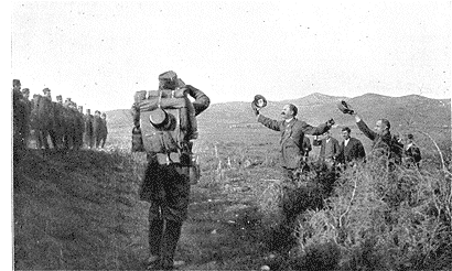 A Schéfik-Bey, derrière une colline grisâtre, sont installés les quatre seuls canons de 105 que possède l'armée d'Epire,--d'anciens Krupp. On vient de finir de les monter, et le général Sapoundsakis vérifie lui-même les emplacements des pièces... En quelques mots il nous en explique le mécanisme et la manoeuvre. Après quoi, souriant, il nous annonce qu'il nous attache, ma femme et moi, à son état-major, avec lequel, désormais, nous allons vivre. Cela nous reposera des rigueurs de la vie en Macédoine.