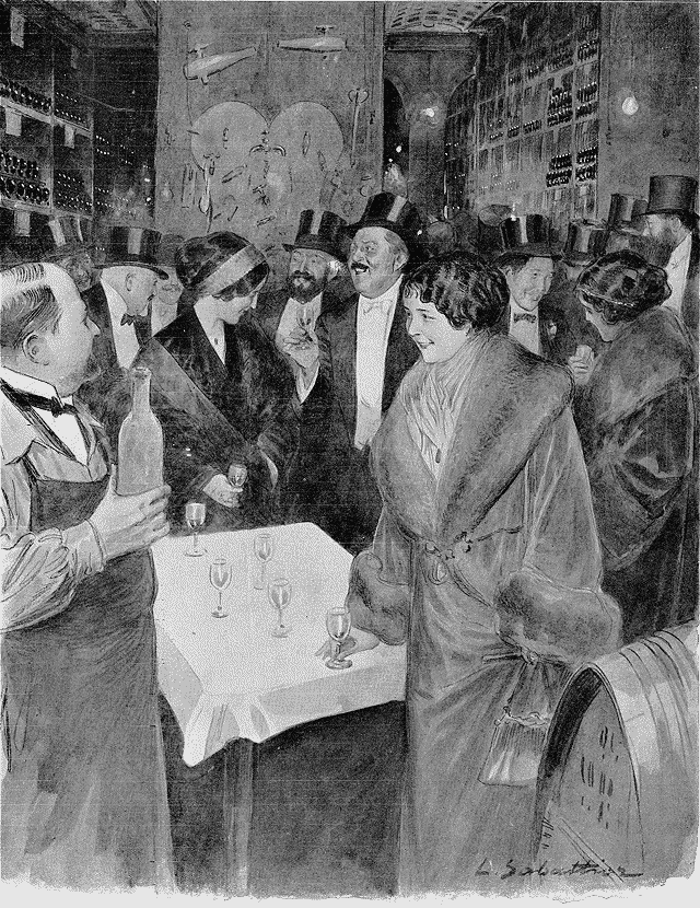 Après s'être, comme il convenait, régalés de mets exquis, les convives descendirent dans les caves du restaurant,--véritable Bibliothèque Nationale des bouteilles, où tous les grands crus sont représentés par leurs échantillons les plus suaves. Et l'on savoura parmi les tonneaux poudreux, dans un des carrefours du vaste cellier, l'arôme incomparable d'une «fine Champagne» centenaire.