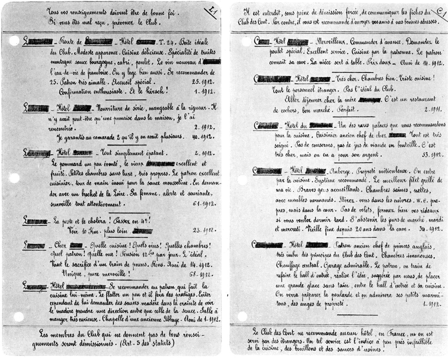 Consignés sur des feuillets mobiles dont l'assemblage forme le plus secret des répertoires de poche, ces précieux renseignements sont transmis aux autres membres, pour leur usage exclusif. Mais il ne leur est pas interdit, tout au contraire, de faire connaître, autour d'eux, les bonnes adresses. «Nul ne mangera bien, hors nous et nos amis», pourraient-ils dire. Et c'est ainsi que, pour le plaisir des vrais gastronomes, ils constituent patiemment, petit à petit, une sorte de dictionnaire de la bonne chère, à la façon dont l'Académie élabore, par un choix judicieux des mots, le dictionnaire du bon langage.