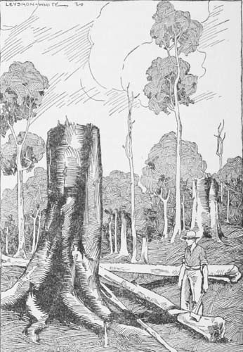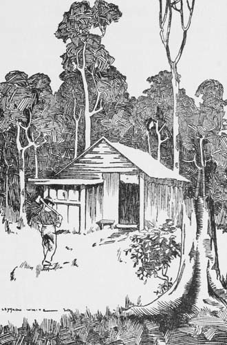 I used to set out at six every morning to go over to my place, where my mate, Jack Redburn, would be awaiting me, and we worked until dark putting up the house. He was a good bushman, and in ten days or so we had a really decent comfortable little house up. Eighteen by twelve it was, with a ten-by-ten kitchen attached, all rough lined and ceiled. It was a lonely time for the wife, and I often felt my way home in the dark to find her crouched alongside the smoky fire, starting at every sound from the scrub.