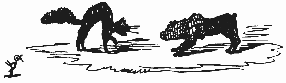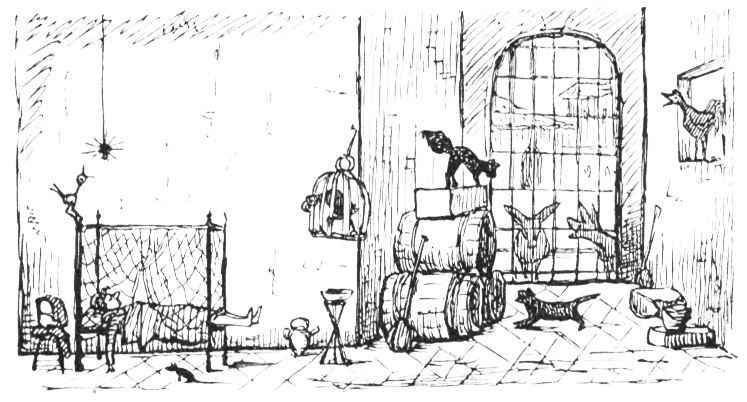 A slight difference arises between the housekeeper's cat and the butcher's dog, who has just come out in his summer costume.
