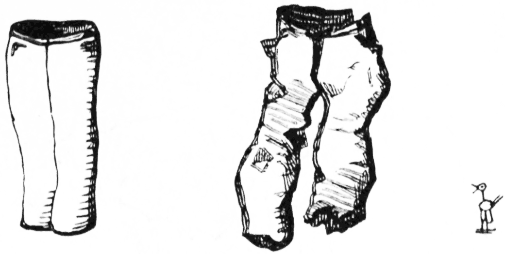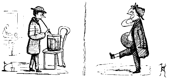 I.—My pantaloons as they went in. II.—My pantaloons as they came out.
