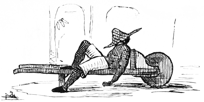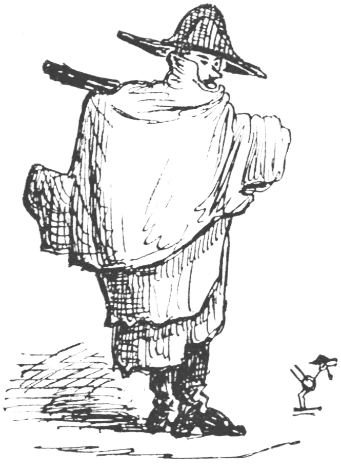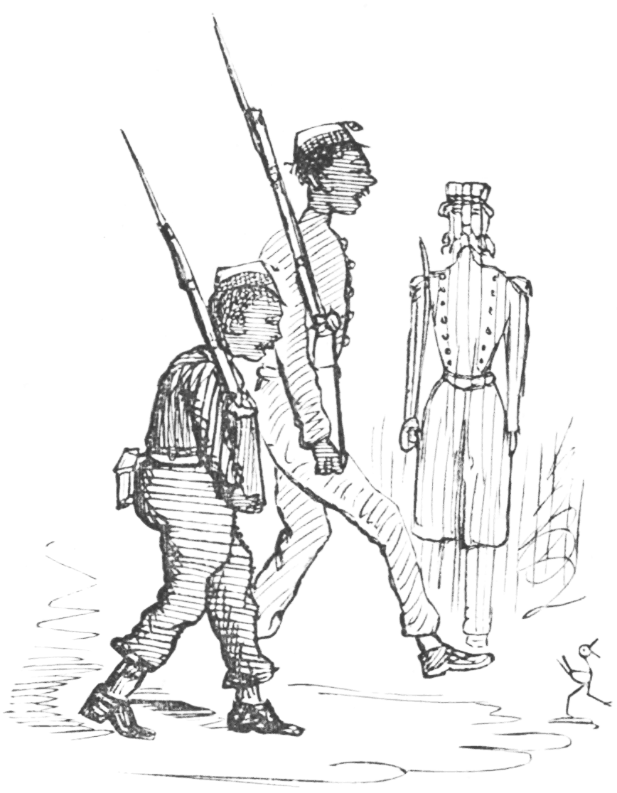 —— the Statue suddenly becomes animated and revolves; and the side-view reveals a CIVIL GUARD, with carbine and knapsack beneath his big military cloak.