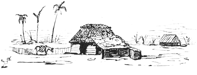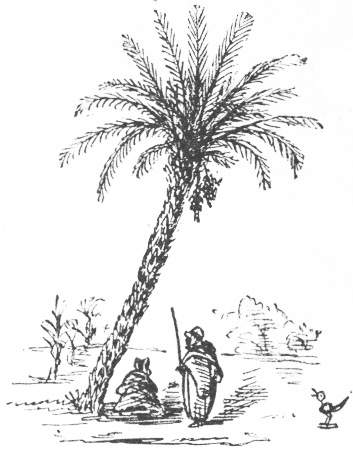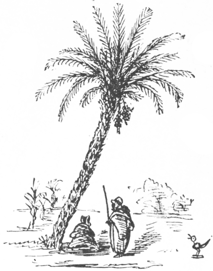 Merely a sketch (for the last page of this little book) of a Date-Palm Tree, in ALGIERS, with a couple of Arabs trying to get in its shade.