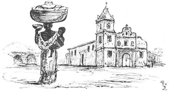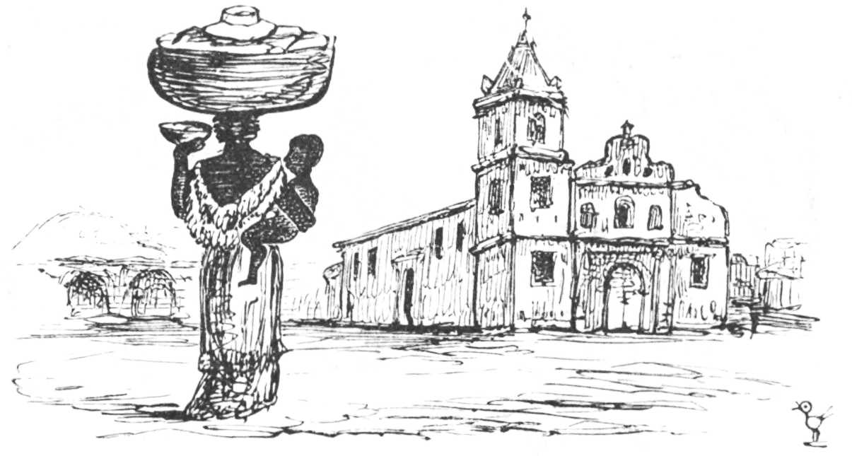 The old and weather-beaten church of Santa Ana—and in the foreground, with basket on her head, baby under one arm, and bowl of milk supported by the other, a colored lady of West Indian descent, vulgarly known as a "Jamaica nigger."