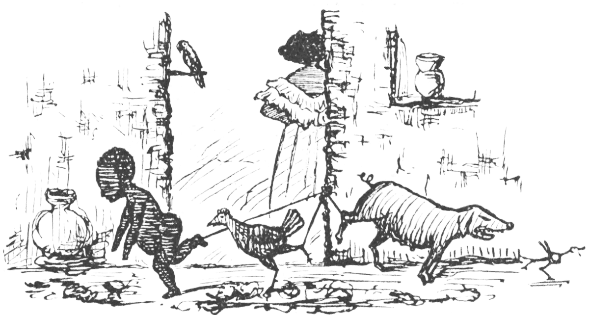 Our Artist, with the naked eye, beholds a pig, a fighting-cock, and a black baby, all tied by the leg, at the humble doorway of the residence of a colored citizen, in the principal street of the capital of Central America.