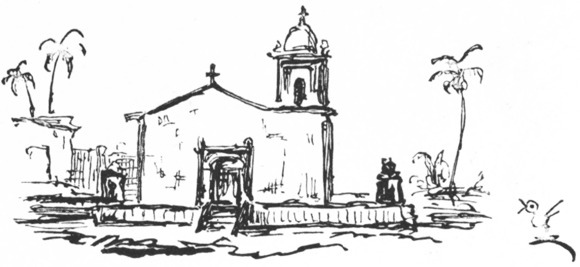 Our Artist wanders about the sleepy little neighboring island, Taboga, where the English steamers lie, and sketches, among other picturesque bits, the clean little whitewashed cathedral in the dirty little Broadway of Taboga.