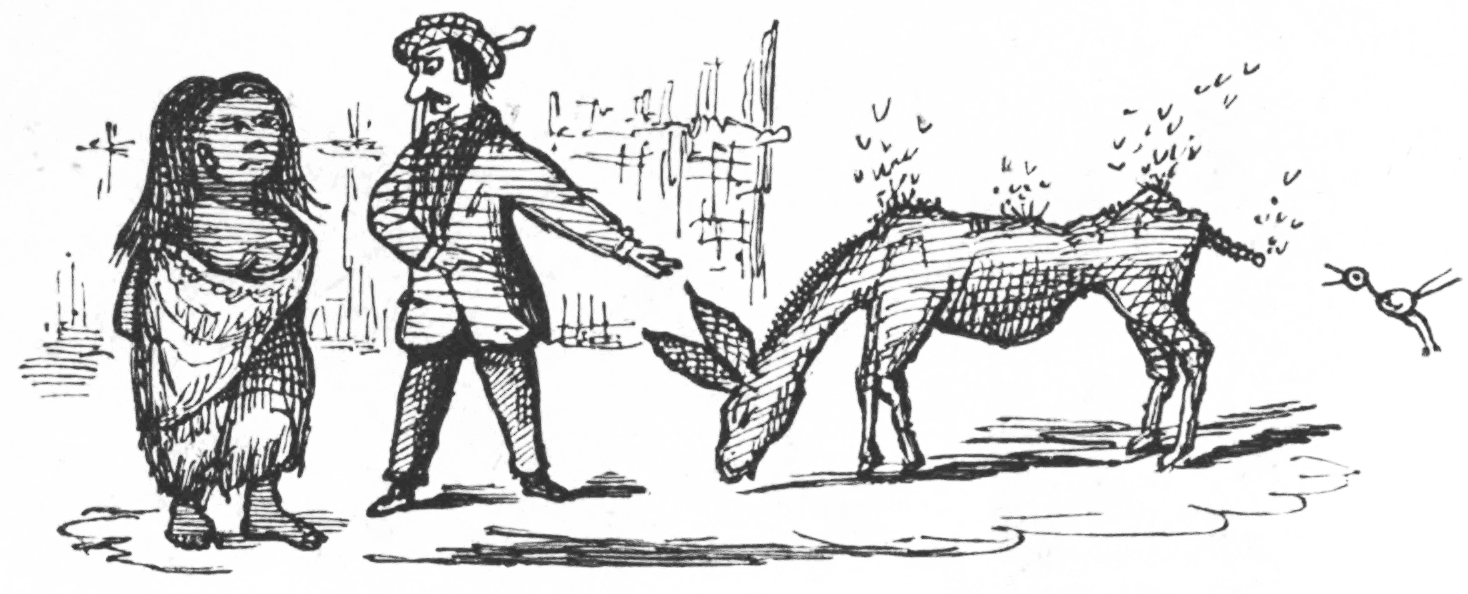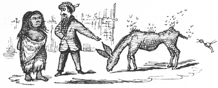 Our Artist, having understood that this town is chiefly remarkable for its fine breed of mules, ironically inquires of a native Venus if this can be considered a good specimen. The N. V. treats Our Artist with silent, stolid, Indian contempt.