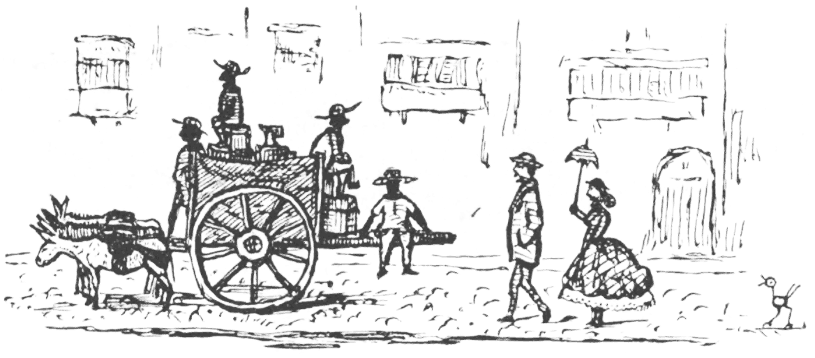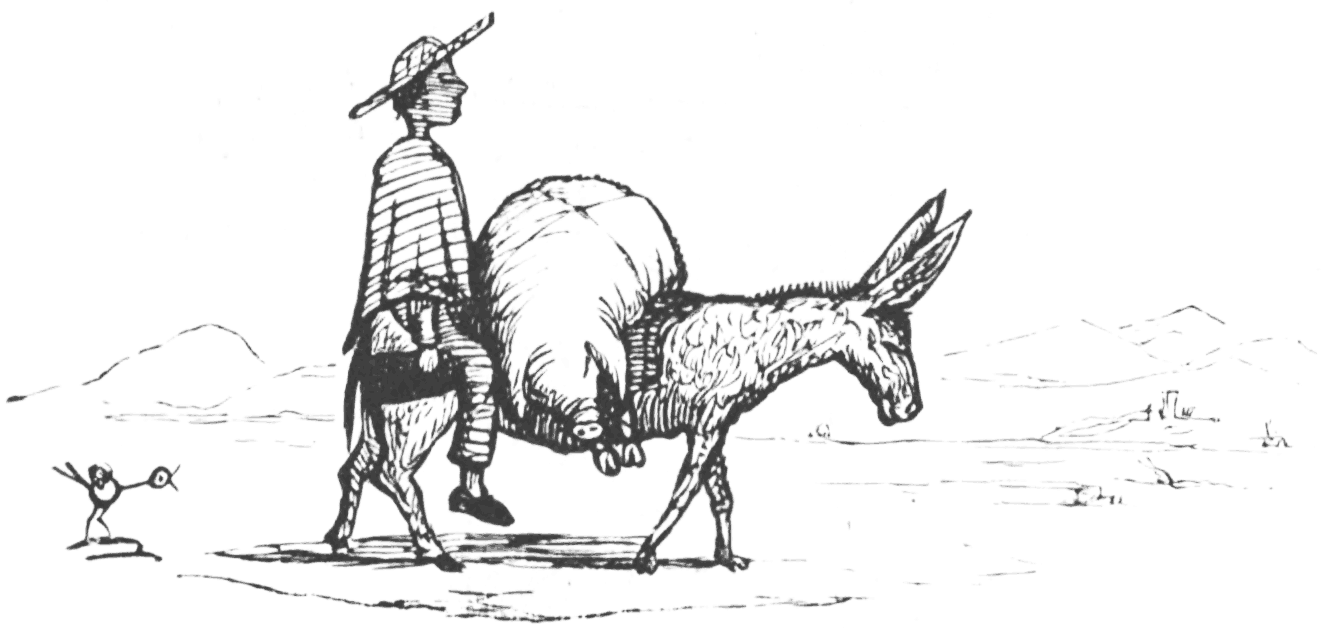 The panadero, or baker, as he appears on his mite of a donkey, rushing round through the streets of Lima, delivering bread to his customers.