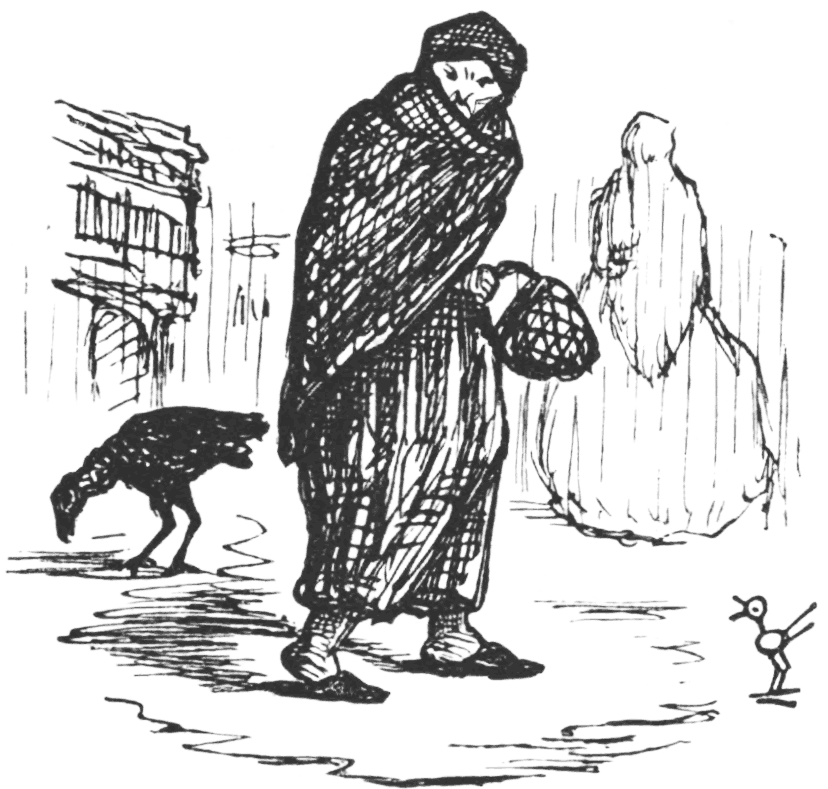One of the first Objects that greets the eagle eye of Our Artist, as he wanders around the streets of NEMOURS, is this cheerful "What-is-it," who mournfully begs for a few grains of corn.