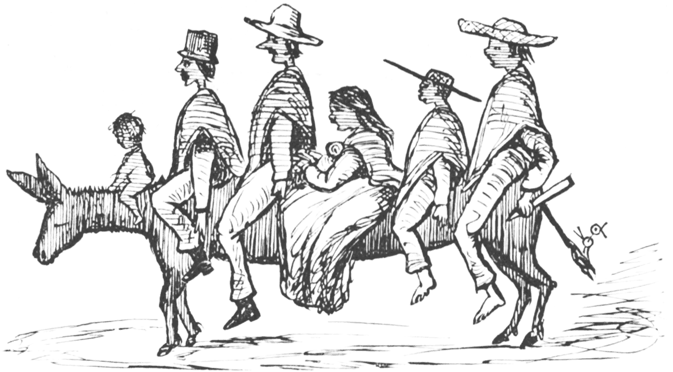 Triumphal entry of Our Artist and his much-the-better-half; reviving the brilliant days of Pizarro and his conquering warriors, as they entered the "City of the Kings."—The Peruvian warriors in the present century, however, conquer but the baggage, and permit the weary traveller to walk to his hotel at the tail-end of the procession.