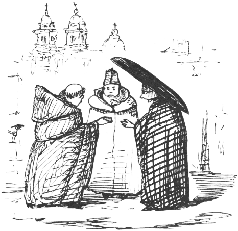A theological discussion of the gravest import takes place between three jolly Fathers of the Roman Catholic Church—a Dominican, a Mercedarian, and a Buena-Muertean.
