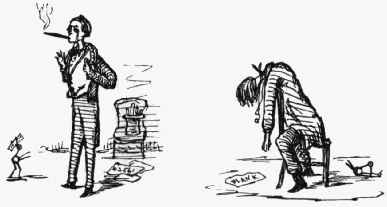 Having invested in the semi-monthly Lima lottery, Our Artist feels so confident of drawing the $4,000 prize, that he gets extravagant, wears his good clothes, and smokes one-dollar cigars; but a revulsion of feeling takes place after the drawing produces nothing for him but blanks.