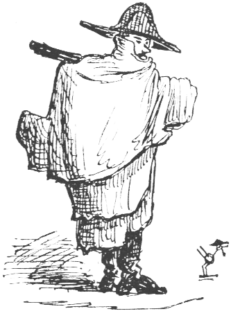 Our Artist, upon his arrival in "Sunny Spain," is overtaken in the Pyrenees, on the French Frontier, by a terrific snow-storm, and is compelled to provide himself, at BAYONNE, with an Overcoat of the Country.