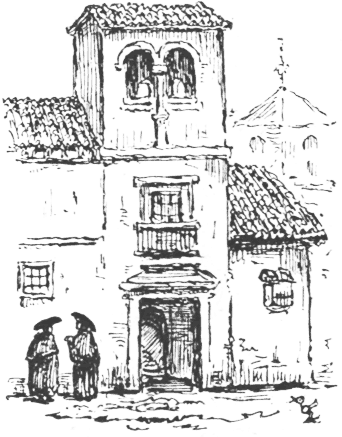 A picturesque little half Moorish and half Spanish dwelling house, in the Calle Jesus Maria; with a couple of Priests in earnest discussion.