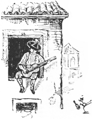 A characteristic little sketch of a Guitar Player, in the window of a second-story dwelling, on the Alemeda de Verano, at GRENADA.