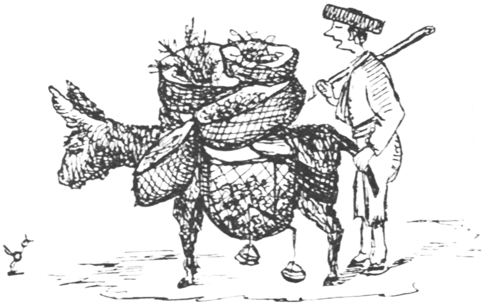 A sketch in GIBRALTAR—This fellow was seen wandering around the streets, selling vegetables to the natives, and steering his Donkey by the tail.