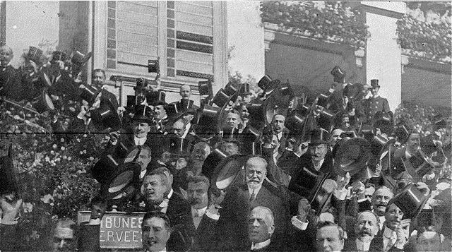 Dès le lendemain de son arrivée à Paris, M. Andrew Carnegie a été reçu par le président de la République. Auparavant, il y avait eu, au ministère de l'Intérieur, une séance spéciale pour la fondation Carnegie (Hero Fund). Le soir, un banquet, présidé par M. Emile Loubet, avait été organisé par les associations et institutions suivantes qui doivent soit leur existence, soit d'importantes subventions au grand philanthrope: la fondation des héros, le comité France-Amérique, l'Université de Paris, le groupe parlementaire de l'arbitrage et de la conciliation internationale, le conseil européen de la dotation Carnegie pour la paix, le conseil national des femmes françaises, le musée social.