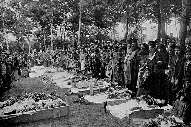 Nous avons, dans notre dernier numéro, publié les portraits des condamnés à mort, auteurs ou complices du meurtre du grand vizir Mahmoud Chefket pacha, qui ont été exécutés à l'aube du 24 juin. La photographie que nous reproduisons aujourd'hui donne la vision des potences après ces pendaisons exceptionnelles par le rang social de plusieurs des suppliciés.