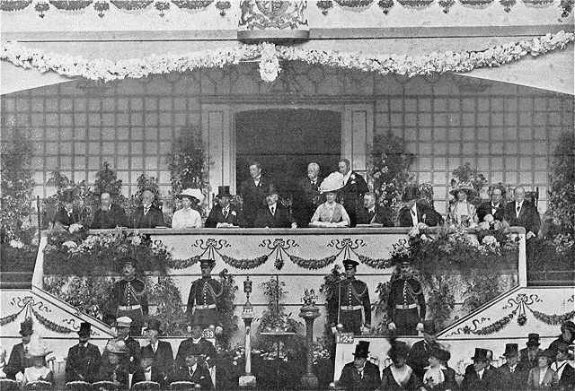 M. Andrew Carnegie, le grand philanthrope et l'un des plus puissants souverains de l'industrie et des finances de l'Amérique moderne, M. Andrew Carnegie, le roi du fer et le constructeur du palais de la Paix, est également depuis lundi l'hôte de notre capitale, où il est accueilli et fêté par tous les groupes ou représentants des institutions humanitaires dont il est le bienfaiteur.