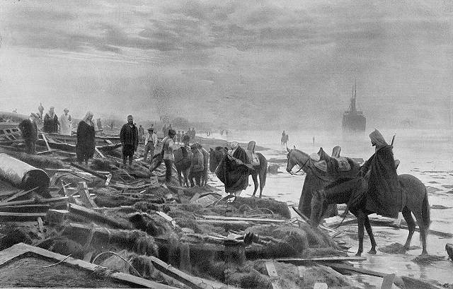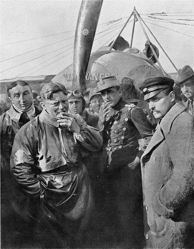 Nos compatriotes s'engagent ensuite dans les gorges encaissées du Danube; ils passent au-dessus des Portes de Fer, et, après un vol de 400 kilomètres, sans escale, ils se reposent à Craïova. Le lendemain, pour la première fois, le soleil est magnifique; en deux heures, ils franchissent les 250 kilomètres qui les séparent de Bucarest: trois aéroplanes militaires roumains, venus au-devant d'eux, les escortent jusqu'au champ d'aviation, où les attend le prince Bibesco. Même accueil enthousiaste à Varna dont les habitants n'ont pas encore vu d'aéroplane; un régiment bulgare musique en tête vient saluer le départ de nos aviateurs. Poussés vers le large par un vent de tempête, les voyageurs atterrissent à Podima, village de pêcheurs, situé non loin des lignes de Tchataldja. Personne ne peut les comprendre, et les paysans, les prenant pour des Bulgares, se montrent défiants. Enfin, tout s'arrange. Le temps se calme, l'avion reprend son vol et vient se poser à San Stefano devant le consul général de France qu'entourent le préfet de Constantinople et les officiers aviateurs ottomans.