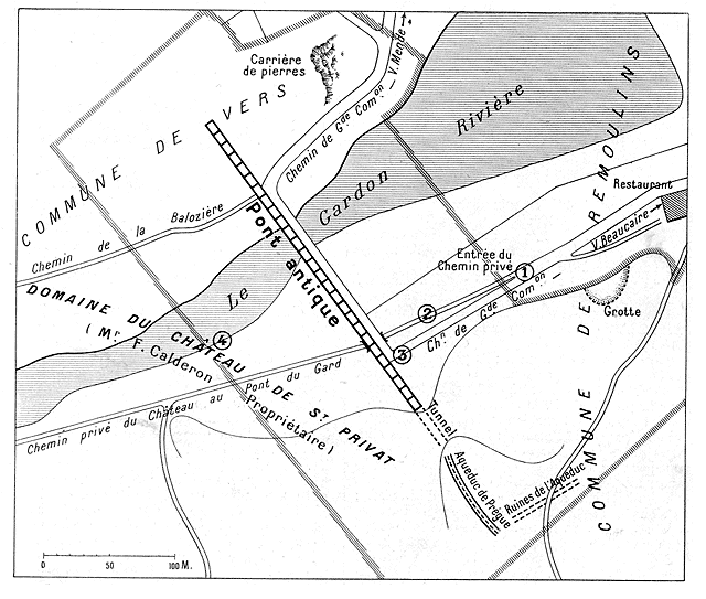 Le pont du Gard est situé sur la commune de Vers, canton de Remoulins, arrondissement d'Uzès. Comme on s'y rend presque toujours par Remoulins, l'opinion publique le place généralement sur cette dernière commune; l'erreur est même consacrée par la plupart des documents officiels.