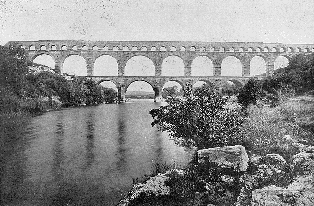 L'ouvrage est formé de trois rangs d'arcades superposés. Les deux premiers sont de 6 et de 11 grandes arcades qui ont jusqu'à 24 mètres d'ouverture, le troisième, établi à environ 47 mètres au-dessus du niveau de l'eau, a 35 arcades plus petites. Ces proportions, hors de toute mesure avec celles du Gardon, s'expliquent par le fait que le «Pont du Gard» n'est pas un pont: c'est un aqueduc. Il fut construit pour réunir par-dessus la vallée, à une altitude considérable, les deux collines entre lesquelles coule le Gardon, et faire passer de l'une à l'autre les eaux des fontaines d'Eure et d'Airon destinées à l'alimentation de Nîmes.