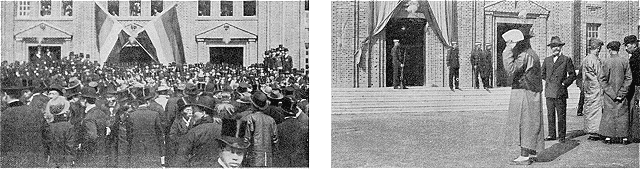 Deux couronnes de fleurs naturelles ornées de rubans tricolores furent déposées au pied de ce monument, l'une par la colonie française, l'autre par la société suisse des anciens légionnaires qui avait tenu à se joindre au cortège formé à l'entrée du cimetière. Cette touchante manifestation des anciens légionnaires suisses, groupés sous le drapeau français, est une réponse éloquente aux attaques haineuses et périodiques de la presse pangermaniste contre notre légion.