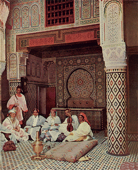 C'est la nuit de Mars qu'éclaire la lune; la suave senteur du henné embaume l'air; ma flûte est à terre, négligée; et ta guirlande de fleurs n'est pas achevée.