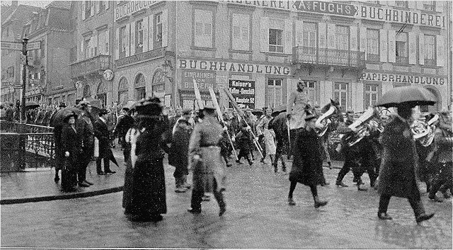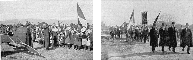 Une automobile les emmena tous deux, avec un docteur, vers Champigny et, quand M. Marcel Habert eut prononcé le discours qu'il avait préparé, M. Paul Déroulède, faisant rabattre la capote de l'auto, se leva, dans un effort de suprême volonté, et à l'assistance, silencieuse comme au prône, adressa une allocution où il salua tour à tour les recrues et les citoyens de Saverne, hier si indignement insultés, et «notre jeunesse qui, de ce côté-ci des Vosges, a si ardemment accepté la loi de trois ans, est venue se ranger si vaillamment sous les drapeaux de la France», affirmant pour les uns comme pour les autres son admiration et sa gratitude.