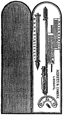 [Pg vi]“The progress in the English department has been very great;—in barometers, thermometers, anemometers, and in every class of instruments. At the close of the Exhibition of 1851, there seemed to have arisen a general anxiety among the majority of makers to pay every attention to all the essentials necessary for philosophical instruments, not only in their old forms, but also with the view of obtaining other and better forms. This desire has never ceased; and no better idea can be given of the continued activity in these respects, than the number of patents taken out for improvements in meteorological instruments in the interval between the recent and preceding exhibitions, which amount to no less than forty-two.” * * * “In addition to numerous improvements patented by Messrs. Negretti and Zambra, there is another of great importance, which they did not patent, viz. enamelling the tubes of thermometers, enabling the makers to use finer threads of mercury in the construction of all thermometers; for the contrast between the opaque mercury and the enamel back of the tubes is so great, that the finest bore or thread of mercury, which at one time could not be seen without the greatest difficulty, is now seen with facility; and throughout the British and Foreign departments, the makers have availed themselves of this invention, the tubes of all being made with enamelled backs. It is to be hoped that the recent exhibition will give a fresh stimulus to the desire of improvement, and that the same rate of progress will be continued.”