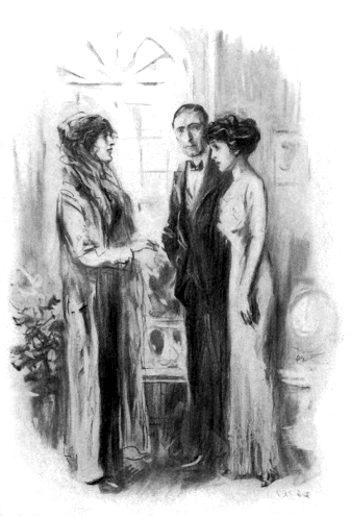 The maid assented with a nervous nod: "Ten minutes ago, about. He's with the lady now—"