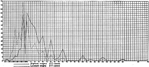 The receiving parlor of another house on Sixth Avenue[21] is reached by climbing a flight of winding stairs and passing through a red door with a little window in it. The bedrooms are small and dirty, with practically no furniture. But the madame is very energetic. As customers enter the house she does not allow them to sit about and talk with the inmates, but urges them to spend money or leave. At 12.45 A. M., March 14, 1912, twelve inmates in flimsy costumes were seated about the parlor with five men—one a forlorn peddler who had come in to sell fruit. The place was in an uproar. One of the inmates was quarreling with the madame; several were complaining of poor business. One of them showed the investigator a plain white card with seven punched holes, proving that up to that hour she had earned only seven dollars, half of which was hers. She stated that she has to pay two dollars per day for board whether she lives at the house or not. As a matter of fact, she as well as other girls in some of these houses lives at home, going home early in the morning and not coming to “work” until 6 P. M.