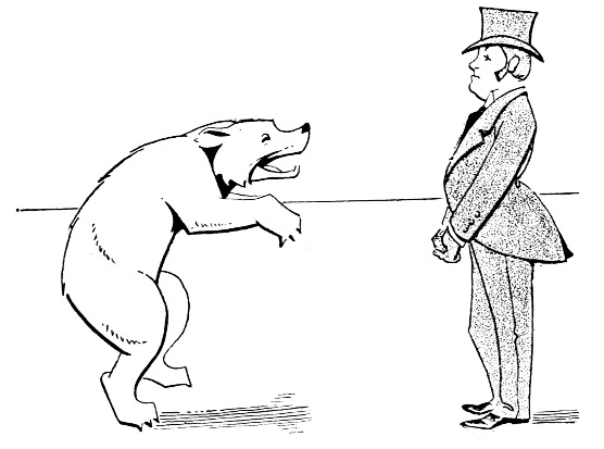 [142]The Bear danced with a pleasant but homely zebra, and Mary with an ostrich, with whom she flirted scandalously. Sammy said he was not a dancing man, and, quietly departing, he loaded his barrow with oranges; and later on, sad to relate, drove a roaring trade among the poor heated beasts, taking all their little valuables in exchange for his goods. He was not selfish, simply a born man of business. However, you can imagine he took marvellous good care not to come near Baby Jane.