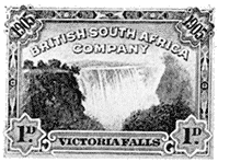 Pour commémorer la visite de la British Association aux chutes de Victoria et l'inauguration, à travers la rivière de Zambèze, d'un pont, merveille moderne d'ouvrage d'art, sur la ligne projetée du Cap au Caire, la Compagnie de l'Afrique du Sud vient d'émettre une série de timbres comprenant six valeurs, du 1 penny au 5 shillings.