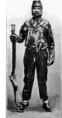 Beaucoup de personnes se rappellent peut-être le nom du capitaine Boyton, inventeur d'un costume en caoutchouc permettant de se maintenir sans le moindre effort à la surface de l'eau. Après avoir obtenu un grand succès de curiosité à l'Exposition de 1878, l'appareil, lourd et encombrant, fut considéré comme n'offrant aucun intérêt pratique. M. Dévot, professeur de natation aux environs de Paris, s'appliquait, depuis plusieurs années, à perfectionner l'invention américaine. Il est arrivé à combiner un costume d'amphibie, à la fois simple et léger, dans lequel il se trouve aussi à l'aise pour franchir un fleuve que pour traverser une forêt. Etendu sur le dos, armé d'un fusil et d'un revolver, il avance dans l'eau en ramant avec les bras, à moins qu'il préfère y dormir. Il en sort, avec armes et bagages parfaitement secs, et continue sa route sans avoir besoin de «se changer».