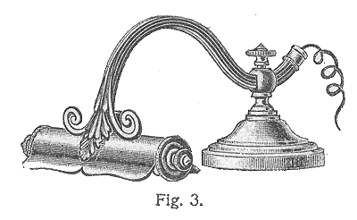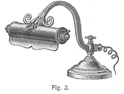 Rien n'est aussi pratique et décoratif pour l'éclairage des pianos et bureaux genre américain que la lampe «Américaine» que représentent nos gravures, lampe réunissant à la fois le côté pratique et décoratif.