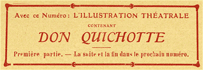 Ce numéro contient: L'Illustration théâtrale avec le premier fascicule de Don Quichotte, par Jean Richepin.