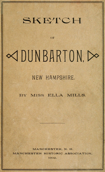 Dunbarton was one of the towns taken from Hillsborough County to form the County of Merrimack. Its centennial was duly celebrated and attended by a vast concourse of invited guests and towns people. A report of its proceedings was compiled by Rev. Sylvanus Hayward. Though small in area and population, Dunbarton occupies a large place in the hearts of its sons and daughters. However dear our adopted homes may become, we still feel that "whatever skies above us rise the hills, the hills are home."