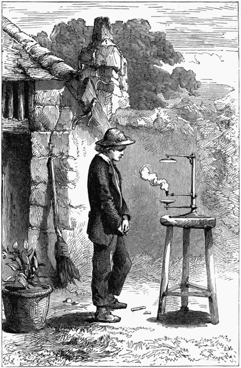 The reader knows that gases and vapours, when imprisoned within a narrow space, do struggle as resolutely to escape as did Sterne's starling from his cage. Their force of pressure is enormous, and if confined in a closed vessel, they would speedily rend it into fragments. Let some water boil in a [Pg 55] pipkin whose lid fits very tightly; in a few minutes the vapour or steam arising from the boiling water, overcoming the resistance of the lid, raises it, and rushes forth into the atmosphere.