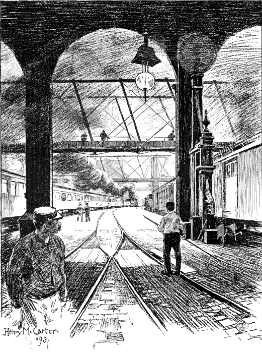 There is a sympathy which draws together two men who have ridden side by side on an engine running seventy miles an hour, and I was glad to accept Engineer Buchanan’s invitation to pay him a visit at his place up the Hudson. No contrast could be greater or more charming than that between the engineer at his post of danger and endurance, and the father and husband, in his pretty vine-covered home by the river. Mr. Buchanan in private life is a prosperous resident of Morris Heights, where he owns valuable property, and enjoys alternate days among the flowers, fruits, and vegetables of his garden. This garden is the pride of his life, and, next to bringing a train in on time, I believe he takes more pride in his roses, grapes, peas, and onions than in anything in the world. We sat for a long time on the engineer’s favorite bench, under a cool grape arbor, with the river running lazily at our feet. Buchanan, looking like a different man in citizen’s dress, talked unpretentiously of his life. There was no posing as a hero, no complaining about hardships, just a simple, straight-forward story of twenty-six years passed almost entirely on an engine—twenty-six years of constant danger. Surely that ought to have some curious influence on the human mind and character. In Buchanan’s case this influence certainly has been for good, for he told me how, as a young man, he had come out of the war with shiftless, lazy habits, fond of wasting his time and money in Eighth Avenue saloons, and then how he had become steady and saving, when he began to run regularly on an engine.