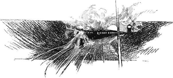 Buchanan smiled quietly as I climbed upon the fireman’s seat at the left. It was a perfect July morning, and at 8.39 the shrill whistle sounded, worked by the conductor’s bell-rope, and we were off, nine minutes behind time on account of some trouble with the air-brakes.