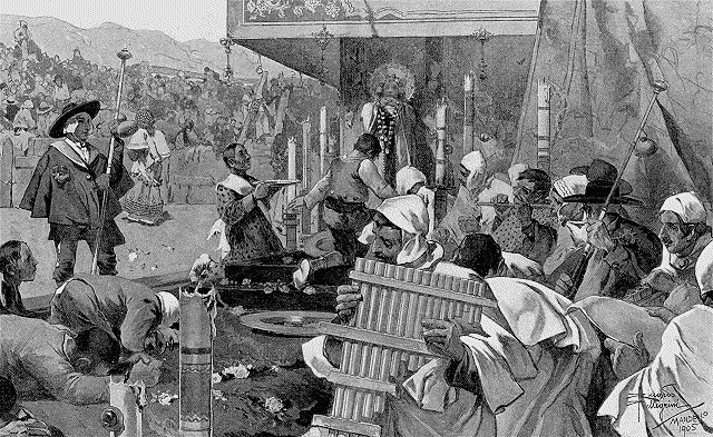 On avait même fait d'autres préparatifs plus extraordinaires: sur le rio de la Miel, on s'occupait de jeter en grande hâte un viaduc de fer, craignant que le vieux pont de pierre actuel ne fût trop peu décoratif ou ne pût suffire à la circulation soudainement accrue.