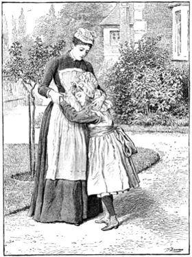 She was standing at the cottage door—'father' allowed no hanging about the forge or gossip with the neighbours—scarcely in sight herself, but eagerly looking out for her mother, when Mrs. Perry appeared, walking rather slowly up the hill which led from the [12] little railway station. In a moment Ruth's hat was on, and she had flown to meet her mother.