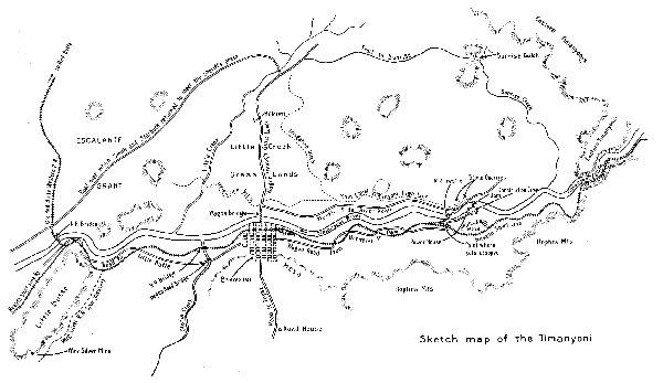 Over the hills from the northern mountain boundary of the Timanyoni a wandering prospector had come with a vague tale of a new strike in Sunrise Gulch, a placer district worked out and abandoned twenty years earlier in the height of the Red Butte excitement. Questioned closely, the tale-bringer confessed that he had no proof positive of the strike; but in the hills he had found a well-worn trail, lately used, leading to the old camp, and from one of the deserted cabins in the gulch he had seen smoke arising.