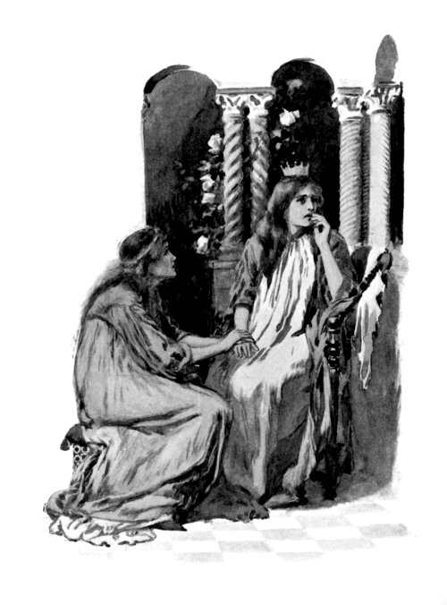 The King was betrothed to a fair Princess named Rowena. She loved her future husband dearly, though his strange malady and the exodus of the old people from his dominions had clouded her happiness, and made her long for some way of alleviating his suffering.